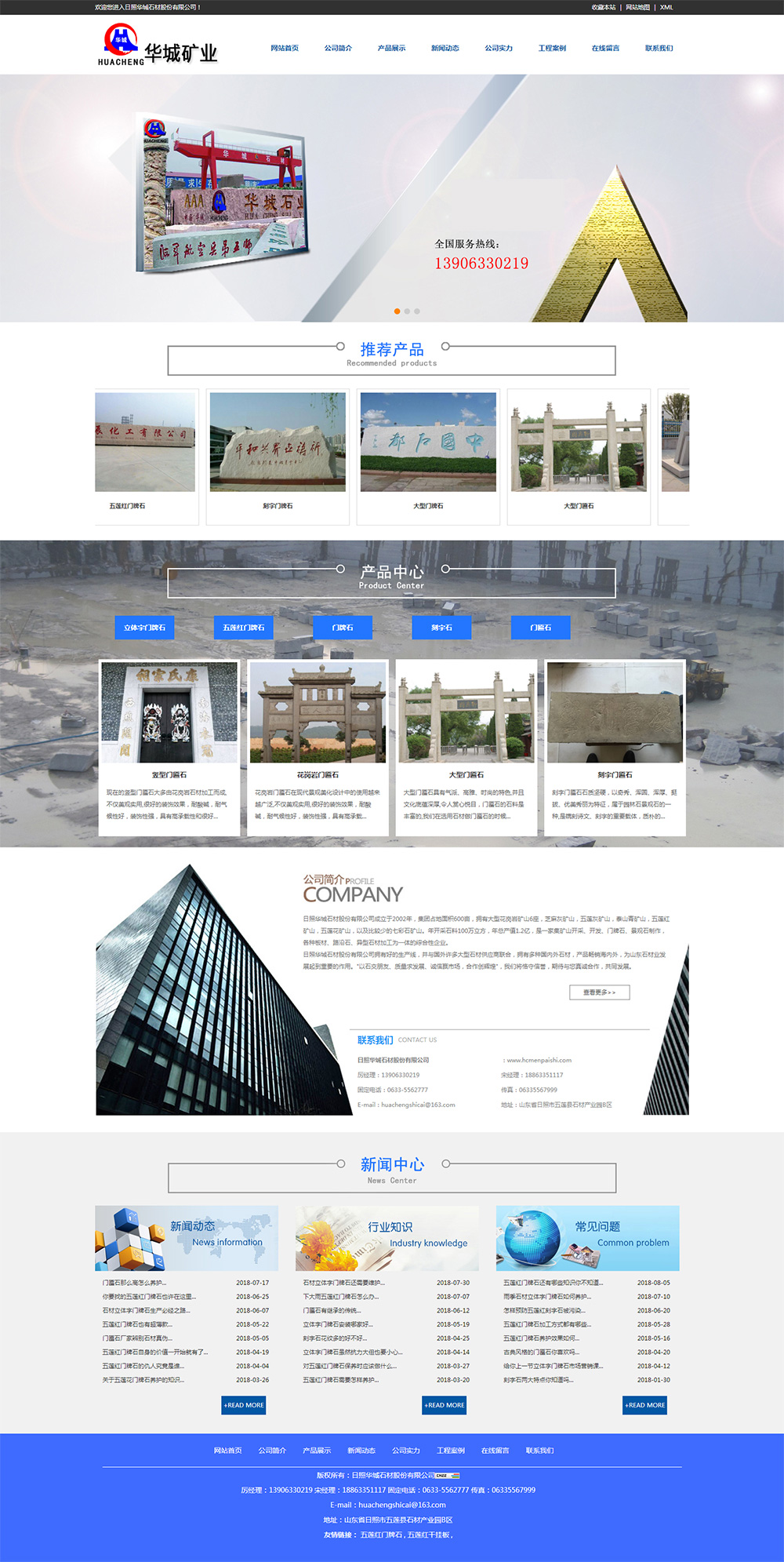 • 日照華城石材股份有限公司成立于2002年,集團占地面積600畝,大型花崗巖礦山6座,芝麻灰礦山,五蓮灰礦山,泰山青礦山,五蓮紅礦山,五蓮花礦山,以及比較少的七彩石礦山。年開采石料100萬立方,年總產(chǎn)值1.2億,是一家集礦山開采、開發(fā)、門牌石、景觀石制作,各 種板材、路沿石、異型石材加工為一體的綜合性企業(yè)。 日照華城石材股份有限公司好的生產(chǎn)線,并與國外許多大型石材供應商聯(lián)合,多種外石材,產(chǎn)品銷往海內(nèi)外,為山東石材業(yè)發(fā)展起到重要的作用。 “以石交朋友、質(zhì)量求發(fā)展、誠信贏市場,合作創(chuàng)輝煌”,我們將恪守信譽,