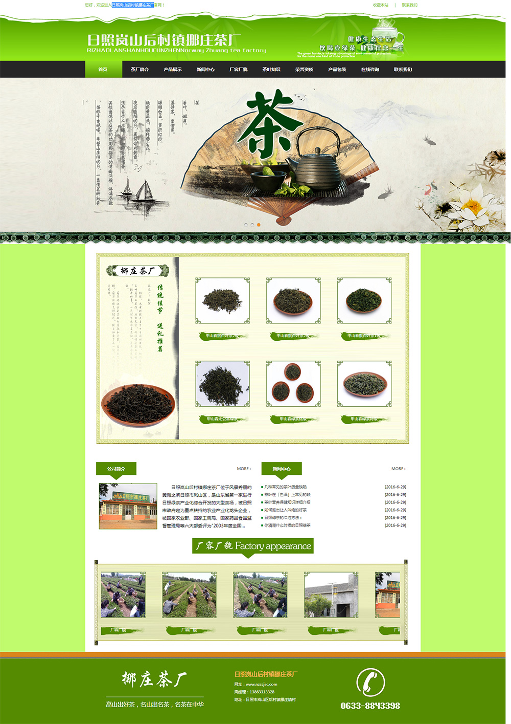 • 日照嵐山后村鎮(zhèn)挪莊茶廠位于風(fēng)景秀麗的黃海之濱日照市嵐山區(qū),是山東省第一家進行日照綠茶產(chǎn)業(yè)化綜合開發(fā)的大型茶場,被日照市政府定為重點扶持的農(nóng)業(yè)產(chǎn)業(yè)化龍頭企業(yè),被國家農(nóng)業(yè)部、國家工商局、國家藥品食品監(jiān)督管理局等六大部委評為"2003年度全國食品安全示范單位"中的唯一茶葉企業(yè),被中國食品檢驗協(xié)會評為"國家質(zhì)量檢測合格產(chǎn)品",被日照市工商局、質(zhì)量技術(shù)監(jiān)督局、衛(wèi)生局等多家單位聯(lián)合評為"日照市消費者滿意單位"等榮譽,被中國消費者基金會評為"中國消費者信譽品牌",2005年在中國第三屆(日照)國際茶博覽會名優(yōu)茶評選中再