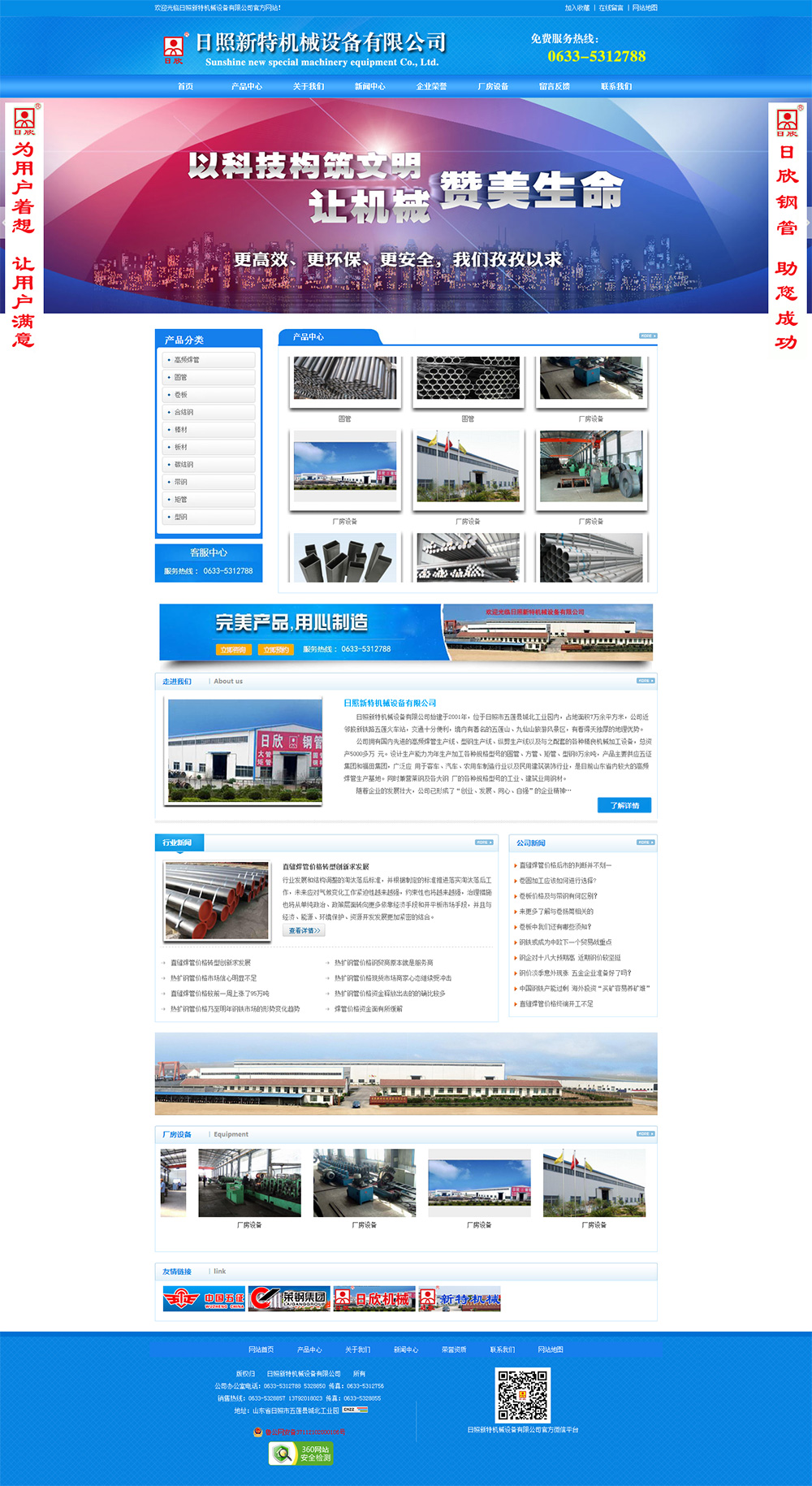 • 日照新特機械設備有限公司始建于2001年,位于日照市五蓮縣城北工業(yè)園內,占地面積7萬余平方米,公司近鄰膠新鐵路五蓮火車站,交通十分便利,境內有著名的五蓮山、九仙山旅游風景區(qū),有著得天獨厚的地理優(yōu)勢。 公司擁有國內先進的高頻焊管生產線、型鋼生產線、縱剪生產線以及與之配套的各種精良機械加工設備,總資產5000多萬元。設計生產能力為年生產加工各種規(guī)格型號的圓管、方管、矩管、型鋼8萬余噸,產品主要供應五征集團和福田集團,廣泛應用于客車、汽車、農用車制造行業(yè)以及民用建筑裝飾行業(yè),是目前山東省內較大的高頻焊